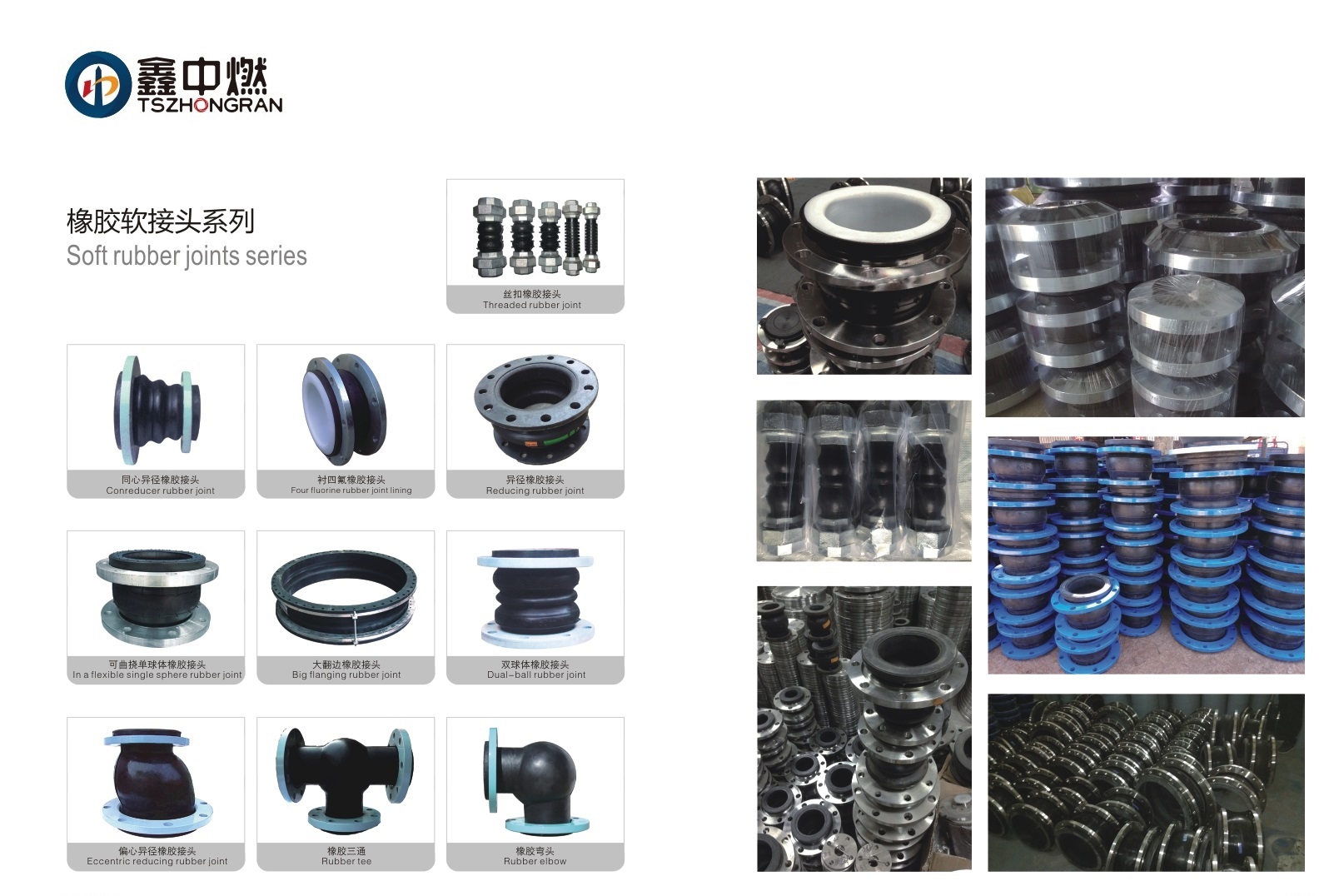 橡膠軟接頭是由內(nèi)外層膠、簾布層和鋼絲圈組成管狀橡膠件,經(jīng)硫化成型后再與金屬法蘭或平行接頭松套組合而成。此產(chǎn)品可降低振動(dòng)及噪聲,并可對(duì)因溫度變化引起的熱脹冷縮起補(bǔ)償作用,廣泛應(yīng)用于各種管道系統(tǒng)。與泵、閥門(mén)的連接、消防器材,震動(dòng)較大的管道、冷熱變化頻繁的管道。主要用于原水和污水的提升和輸送,火力發(fā)電廠(chǎng)的給水和冷卻循環(huán)水,冶金行業(yè),冷凝水,化工行業(yè)的化學(xué)物質(zhì)的管道輸送,石化行業(yè)的冷卻,稀釋及其它行業(yè)長(zhǎng)短距離管線(xiàn)間的柔性連接。因?yàn)橄鹉z具有較高的耐磨性,還適用于一切行業(yè)的粒狀和粉狀及汽體的低溫輸送。
