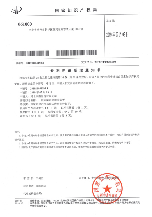 "A Pipe Bending Device"Notification of Acceptance of Patent Application for