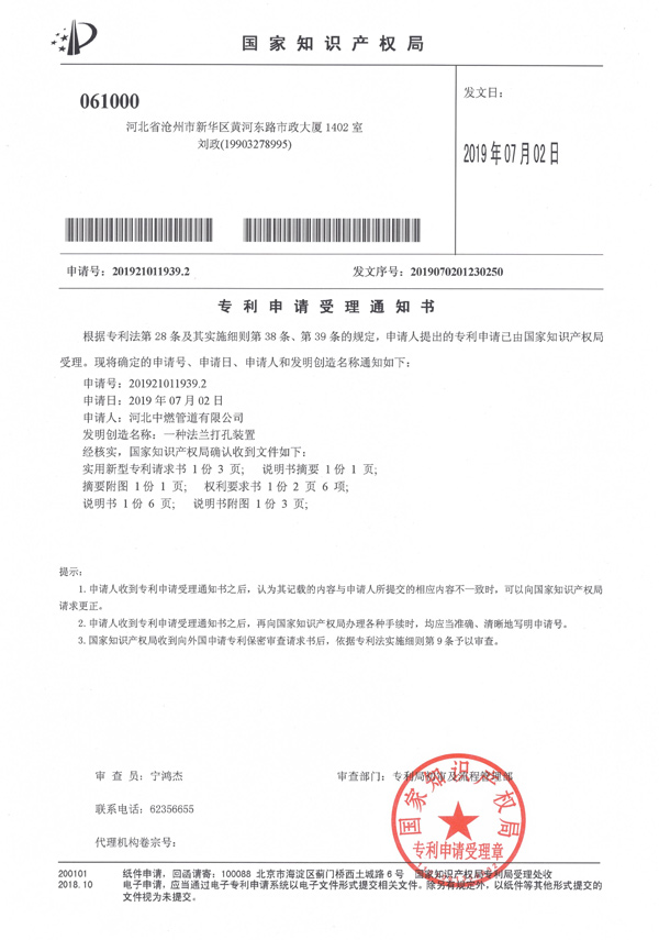 "A Flange Perforating Device"Notification of Acceptance of Patent Application for