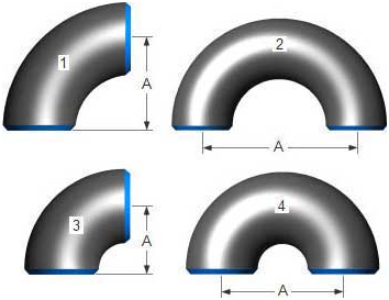 The most applied version is the 90° long radius and the 45° elbow, while the 90° short radius elbow is applied if there is too little space. The function of a 180° elbow is to change direction of flow through 180°. Both, the LR and the SR types have a center to center dimension double the matching 90° elbows. These fittings will generally be used in furnesses or other heating or cooling units.