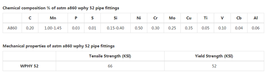 【Summary Description】ASTM A860 WPHY 52 is High Yield fitting steel material,which is largely utilized at High-pressure prerequisites