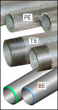 Ends of Pipes For the ends of pipes are 3 standard versions available. Plain Ends (PE) Threaded Ends (TE) Beveled Ends (BE) |