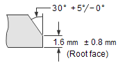 Ends are mostly be beveled to angle 30° (+ 5° / -0°) with a root face of 1.6 mm (± 0.8 mm). |
