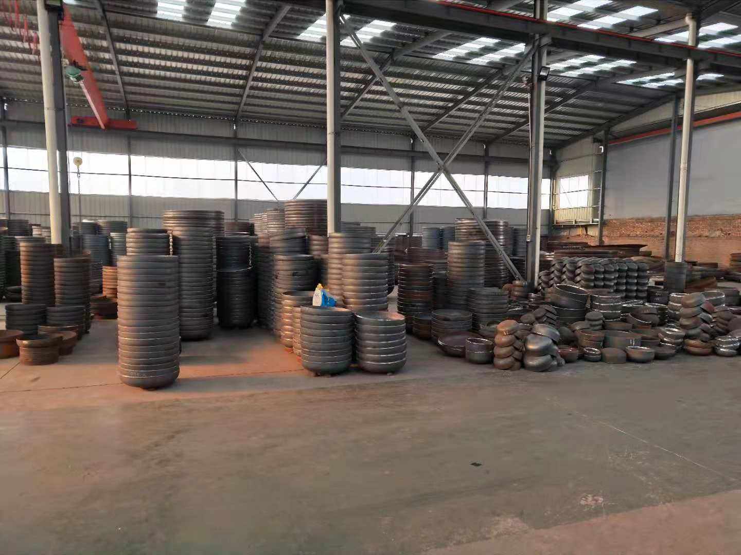 I. Acceptance and Acceptance of Raw Materials 1. Raw materials shall meet the requirements of relevant standards or technical specifications. 2. The surface of raw materials should be free from oil pollution, excessive rust corrosion and obvious dent defects, low melting point metal pollution, etc. 3. Check the quality certificate, furnace number, batch number and specifications of raw materials, manufacturers and implementation standards. 4. Mechanical rust removal of raw materials with wire brushes to meet the requirements of non-destructive testing. 5. Dimension testing of raw materials (length, width, thickness and unevenness of steel plate). 6. After entering the factory, the steel plate should be re-examined by ultrasonic wave, and the grade I is qualified. 7. Physical and chemical testing, chemical element analysis, mechanical properties and hardness test of incoming steel plate according to furnace batch number and specification. The test results should meet the requirements of raw material standards. 8. Number registration in accordance with factory regulations after reexamination II. Manufacturing process 1. Material selection and cutting, pipe cap selection of appropriate steel plate, template marking and oxyacetylene flame cutting, cleaning of iron oxide and gas cutting spatter residues on the sheet, and raw materials furnace, batch number and pipe specifications, engineering name, number clearly marked. 2. Tube cap pressing (1) Put the billet into the heating furnace, and the heating rate is less than or equal to 200 C/h above 400 C. The billet is heated to the temperature required by the technology, and the heat preservation is carried out. (2) Put the heated blank into the adding die (the inner surface of the die should be uniformly coated with graphite powder) to make the blank concentric with the die circumferentially. (3) Start the hydraulic system to ensure that the pressure is greater than 8 MPa. (4) The billet temperature was measured by infrared thermometer at initial pressure. (5)In the process of pressing, and maintain circumferential pressure balance. 3. Heat treatment: According to the heat treatment process, the pipe cap is put into the furnace for heat treatment. 4. Surface treatment: After heat treatment, the oxide skin on the surface of the pipe cap is removed by sandblasting machine or polishing machine. 5. Mechanical properties testing: According to the relevant standards, the mechanical properties of the cap were tested to ensure that the mechanical properties of the cap were up to the standard, and the testing items and sampling should meet the requirements of the relevant standards. 6. End processing: mechanical end processing grooves according to design confirmation drawings. 7. Appearance detection There should be no cracks, over-burning, over-heating and other phenomena on the pipe cap, and there should be no hard spots on the surface. Welding repair is not allowed for any defect on the pipe body of pipe cap. 8. Dimension Detection The company's relevant inspectors, according to the drawings and pipe fittings related standard requirements for dimensional testing, and meet their tolerance requirements. 9. The inner and outer surface of the cap should be smooth, without any damage to strength and appearance defects, such as scars, scratches, heavy skins, etc. After finding the defects, the cap should be repaired, and the repaired area should be smooth until the defects are cleared by magnetic particle inspection. 10. Nondestructive Testing of Hot Pressed Caps After heat treatment, the company holds the relevant qualification certificate personnel, according to the standard requirements for magnetic powder or penetration of the pipe cap, the test results reached Grade I qualified. 11. Acid pickling and passivation treatment The stainless steel pipe parts should be passivated by acid pickling. 12. Identification Mark with a spray-brush or low-stress impression, and clearly mark the contents required by the standard on the outer wall in sequence. 13. Pipe cap stacking and transportation: The cap should not contact any part of the carriage during transportation to avoid bumping. |