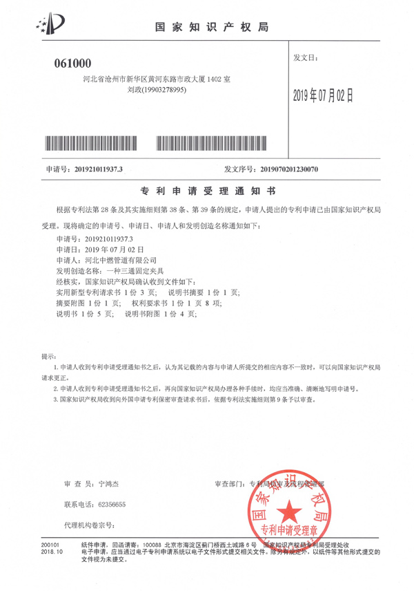 "A Reducing Pipe Holding Device"Notice of Acceptance of Patent Application for -